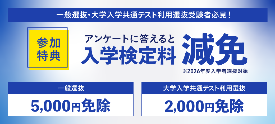 気になる動画を視聴してアンケートに回答するだけで、入学検定料減免の特典付き!